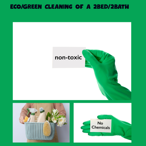 Green cleaning includes high and low dusting, kitchen and bathroom sanitation, floor care, and surface wiping—all performed with eco-certified solutions. We also prioritize reusable microfiber cloths, HEPA-filtered vacuums, and safe essential-oil alternatives (only when clients approve to avoid allergy risk). Non-toxic cleaning solutions safe for children and pets by avoiding harsh chemicals, artificial fragrances, and toxins commonly found in traditional cleaners. Instead, we use plant-based formulas, botanical disinfectants, and sustainable tools that reduce indoor air pollution and environmental impact.